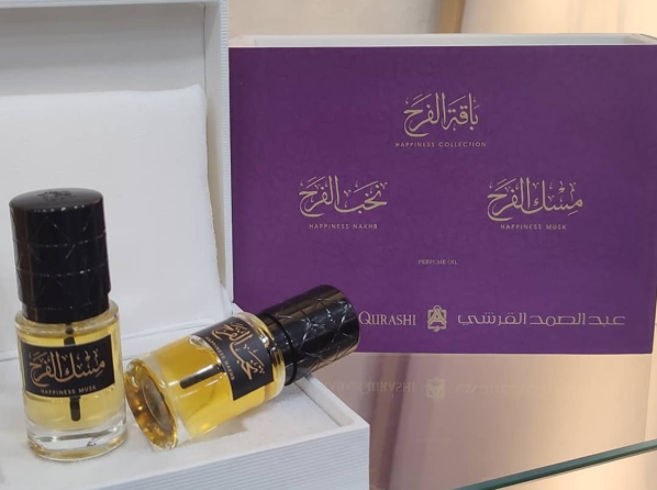 باقة الفرح عبدالصمد القرشي، Abdul Samad Al Qurashi Happiness Collection، مسك الفرح، نخب الفرح، زيت عطري مركز، عطور شرقية فاخرة، عطور العروس، هدايا فاخرة من القرشي.