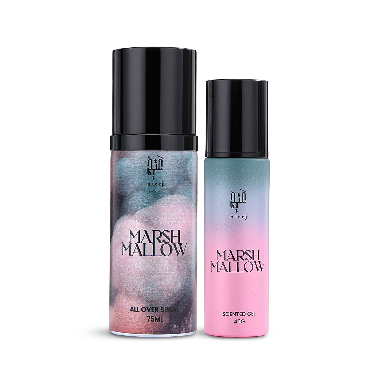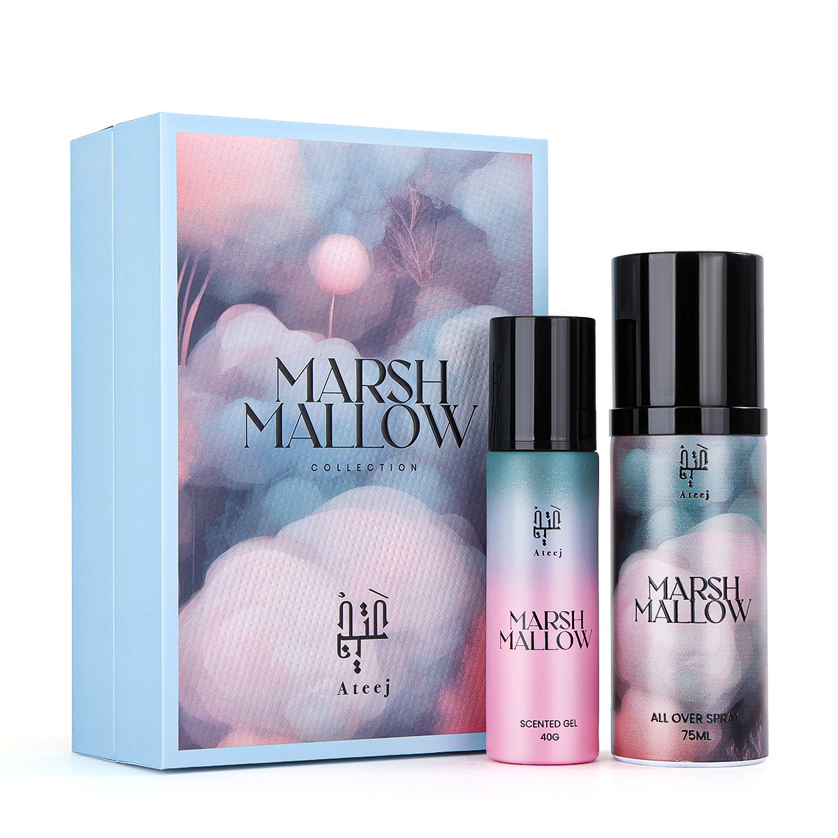 مجموعة مارشميلو، Marsh Mallow Ateej، عطر مارشميلو نسائي، عطر جورماند سكري، معطر جسم مارشميلو، جل معطر مارشميلو، عطر حلو للبنات، عطور نسائية سكرية، Marshmallow perfume set، Ateej perfume