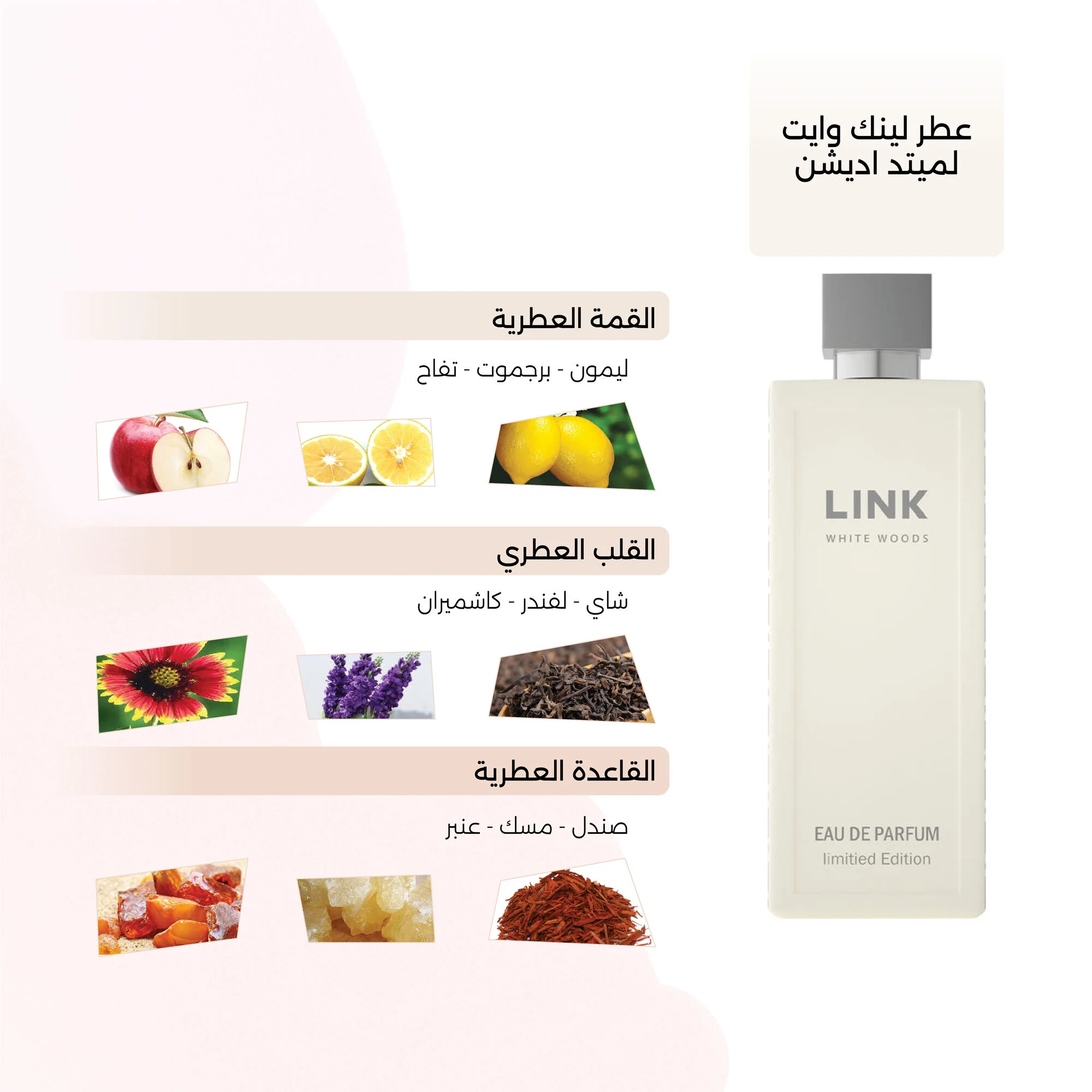 “لينك وايت لميتد إديشن” هو عنوان الأناقة المعاصرة. عطر فاخر يجمع بين الحيوية والعمق في توليفة فريدة، صُمم ليمنحك حضورًا آسراً يليق بالرجل الواثق. من أول رشة، تتجسد الأناقة في نفحات منعشة من الليمون والبرغموت والتفاح، تتبعها طبقات راقية من الشاي واللافندر والكاشميران، لتستقر في النهاية على قاعدة دافئة من خشب الصندل، المسك، والعنبر، مع لمسة فانيلا ناعمة تبقى في الذاكرة.