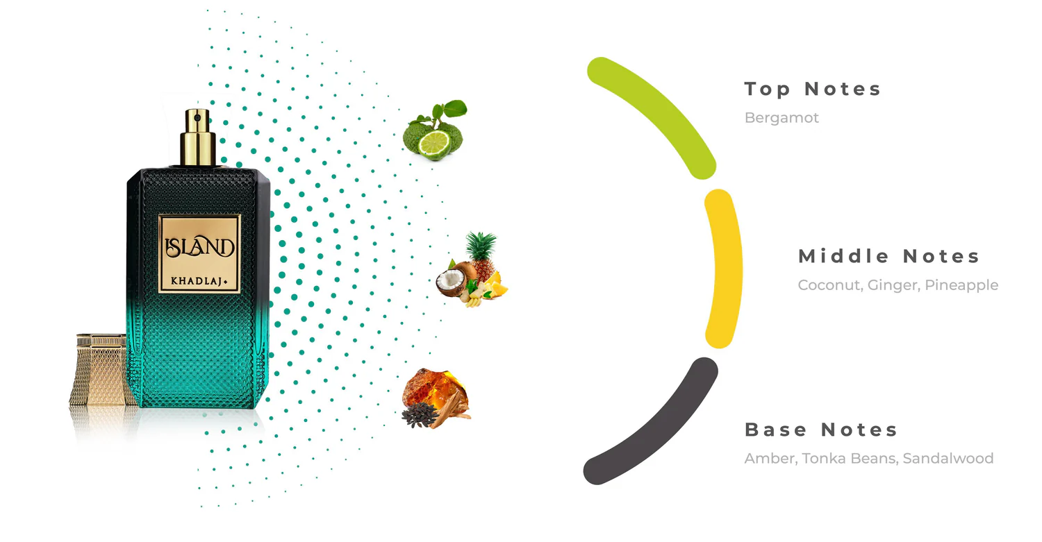 استمتع برحلة عطرية استوائية تنقلك إلى جزيرة من الفخامة والانتعاش مع عطر Island من Khadlaj